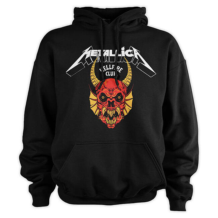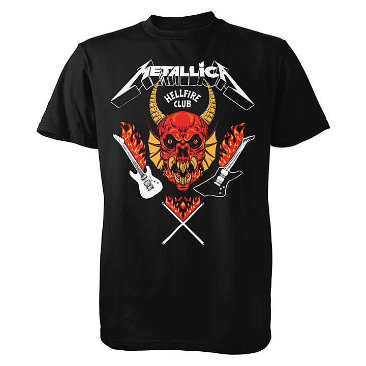 The “Hellfire Club” merchandise available to fans includes a black hoodie, a white jersey with black sleeves, and a black T-shirt. Additionally, you can purchase these Metallica Hellfire Club goods through their Probity Merch UK store, Netflix, or the Metallica website.