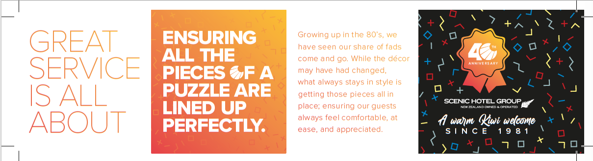 After a tough few years for the hotel and tourism industries, Scenic Hotel Group wanted to celebrate their 40th anniversary with something truly special. They were after something fun, nostalgic, and memorable—an item that would bring a smile to people’s faces, spark memories of simpler times, and stick around long after the celebration. Enter their creative vision: custom-branded Rubik’s Cubes. Nothing screams 80s retro quite like this iconic toy, which also happens to fit perfectly with today’s vintage trends.
