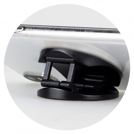 Bamboo phone holder which sticks onto the back of any mobile phone and provides grip for using the device. It is manufactured from plastic and bamboo. The phone holder also works as a stand, and it will hold a mobile phone in a horizontal position on a surface for easy viewing. Bamboo is a natural material and because the plant is fast growing, it places less demands on natural resources and produces a material that is durable and versatile. Bamboo can also produce unavoidable variances in the grain pattern, colour and branding.