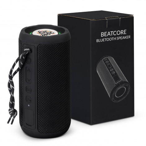 Premium water-resistant Bluetooth speaker with a hard-wearing design, perfect for outdoor use. Beatcore has two 6W speaker outputs, and music can be played for up to five hours via Bluetooth, AUX or Micro-SD card. The speaker has music, volume and hands-free controls and a built-in light display at either end of the speaker showcases the two branding areas. The speaker recharges in three hours and is presented in a printed black gift box with instructions and a charging cable.