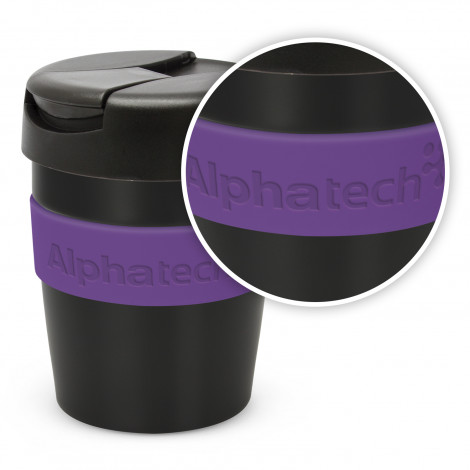 Premium 230ml double wall, vacuum insulated stainless steel cup which will keep drinks hot for up to three hours. It has a soft-touch silicone band and a secure screw on lid with a splashproof flip closure. The cup, lid and band can be mixed and matched in any colour combination from the standard colours at no extra cost. Up to five different colour combinations are included in the price and more are available for an additional charge. Java is BPA-free and is presented in a black gift box. An optional gift tube is available on request. This product is not dishwasher safe and handwashing is recommended.