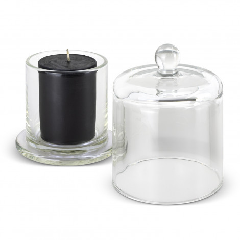 Elegant cloche and candle set to keep the candle dust free. The set comes with a clear glass cloche and a black unscented soy wax pillar candle. It is presented in a natural gift box with a Keepsake branded sleeve.