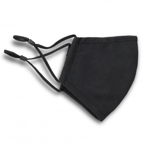 Premium face mask which can be reused by hand washing it in warm water. The Luxe mask features a nose wire to provide a more secure, comfortable fit. Luxe has matching black ear loops with adjustable silicone toggles to ensure one size will fit most people. The mask has seams stitched into the front panel to create more structure, keeping the material of the mask away from the nose and mouth. This mask is manufactured from a blend of cotton and polyester. This face mask is manufactured for use in the home or for recreational or occupational use. A care label is attached to the face mask.